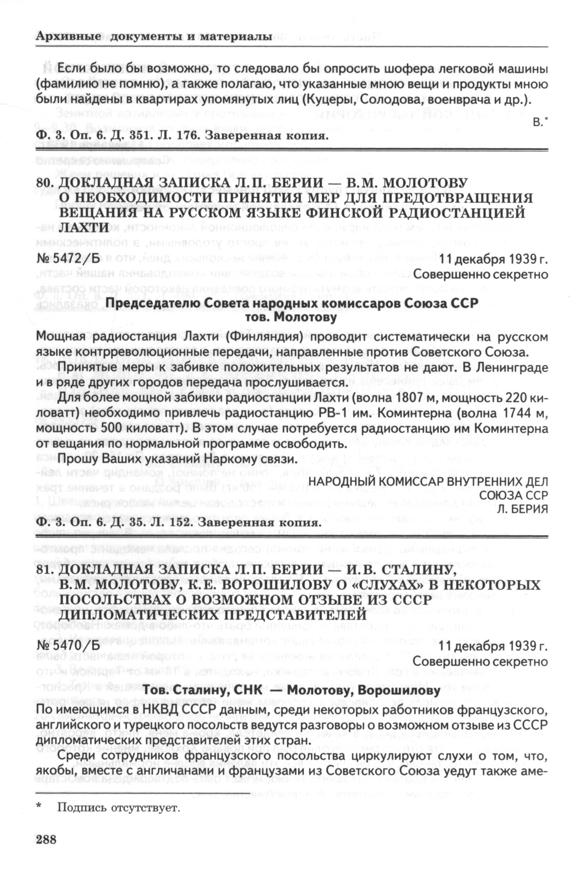 Документ был опубликован в книге Зимняя война 1939–1940 гг. в рассекреченных документах Центрального архива ФСБ России и архивов Финляндии: Исслед., док., коммент. — М.: ИКЦ «Академкнига», 2009.